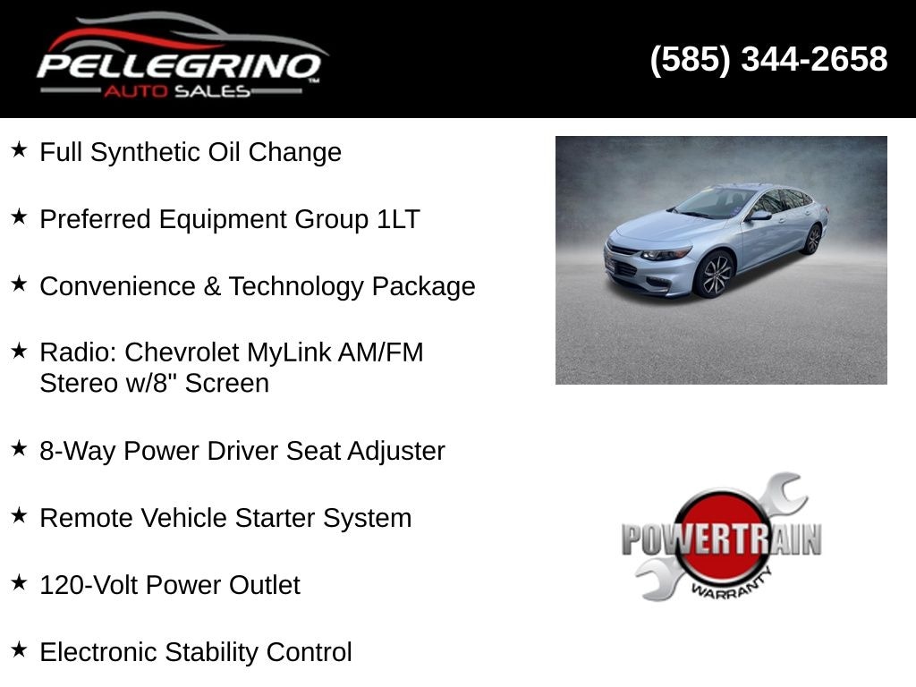 Recent Arrival! 2017 Chevrolet Malibu LT 1LT Arctic Blue Metallic LT 1LT 1.5L DOHC 6-Speed Automatic FWD Full Synthetic Oil Change, 120-Volt Power Outlet, 18" Aluminum Wheels, 3-Spoke Leather-Wrapped Steering Wheel, 8-Way Power Driver Seat Adjuster, Brake assist, Convenience & Technology Package, Driver Information System w/Color Display, Dual USB Charging-Only Ports, Electronic Stability Control, Exterior Parking Camera Rear, Inside Rear-View Auto-Dimming Mirror, Leather Wrapped Shift Knob, Panic alarm, Preferred Equipment Group 1LT, Radio: Chevrolet MyLink AM/FM Stereo w/8" Screen, Remote Vehicle Starter System, Security system, Wireless Charging For Devices.