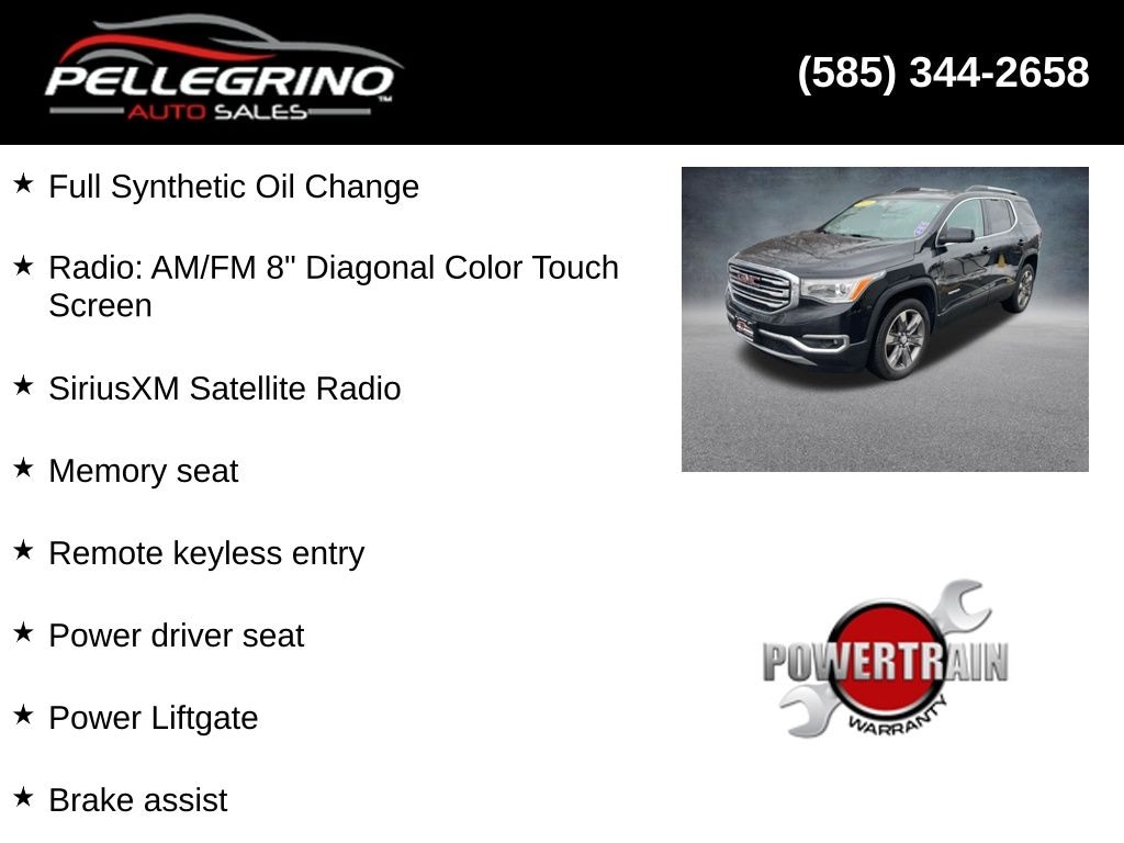 Recent Arrival! 2017 GMC Acadia SLT-2 SLT-2 3.6L V6 SIDI DOHC VVT 6-Speed Automatic AWD Full Synthetic Oil Change, 6-Passenger (2-2-2 Seating Configuration), Alloy wheels, Brake assist, Exterior Parking Camera Rear, Heated front seats, Memory seat, Power driver seat, Power Liftgate, Power passenger seat, Radio: AM/FM 8" Diagonal Color Touch Screen, Remote keyless entry, SiriusXM Satellite Radio.