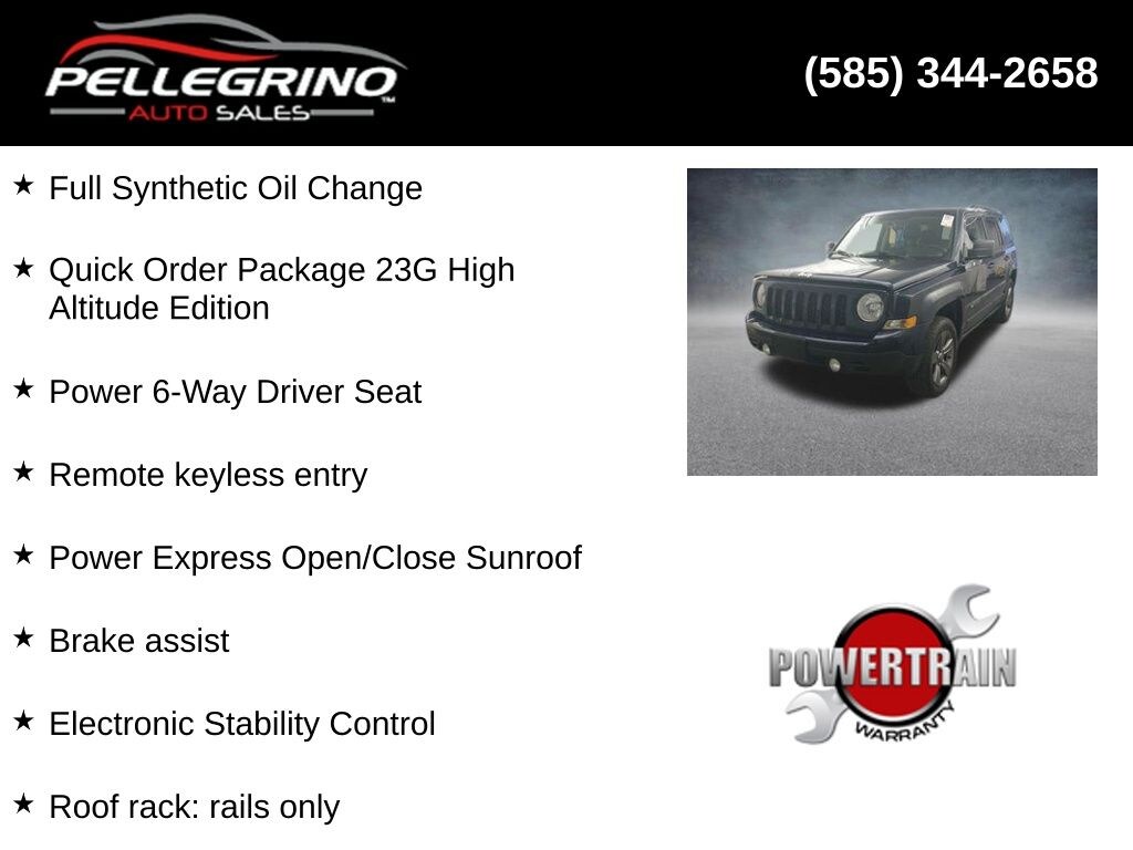 Recent Arrival! 2015 Jeep Patriot High Altitude True Blue Pearlcoat High Altitude 2.4L I4 DOHC 16V Dual VVT 6-Speed Automatic 4WD Full Synthetic Oil Change, Alloy wheels, Brake assist, Electronic Stability Control, Heated front seats, Leather Trimmed Bucket Seats, Power 6-Way Driver Seat, Power Express Open/Close Sunroof, Quick Order Package 23G High Altitude Edition, Remote keyless entry, Roof rack: rails only, Wheels: 17" x 6.5" Mineral Gray Aluminum.