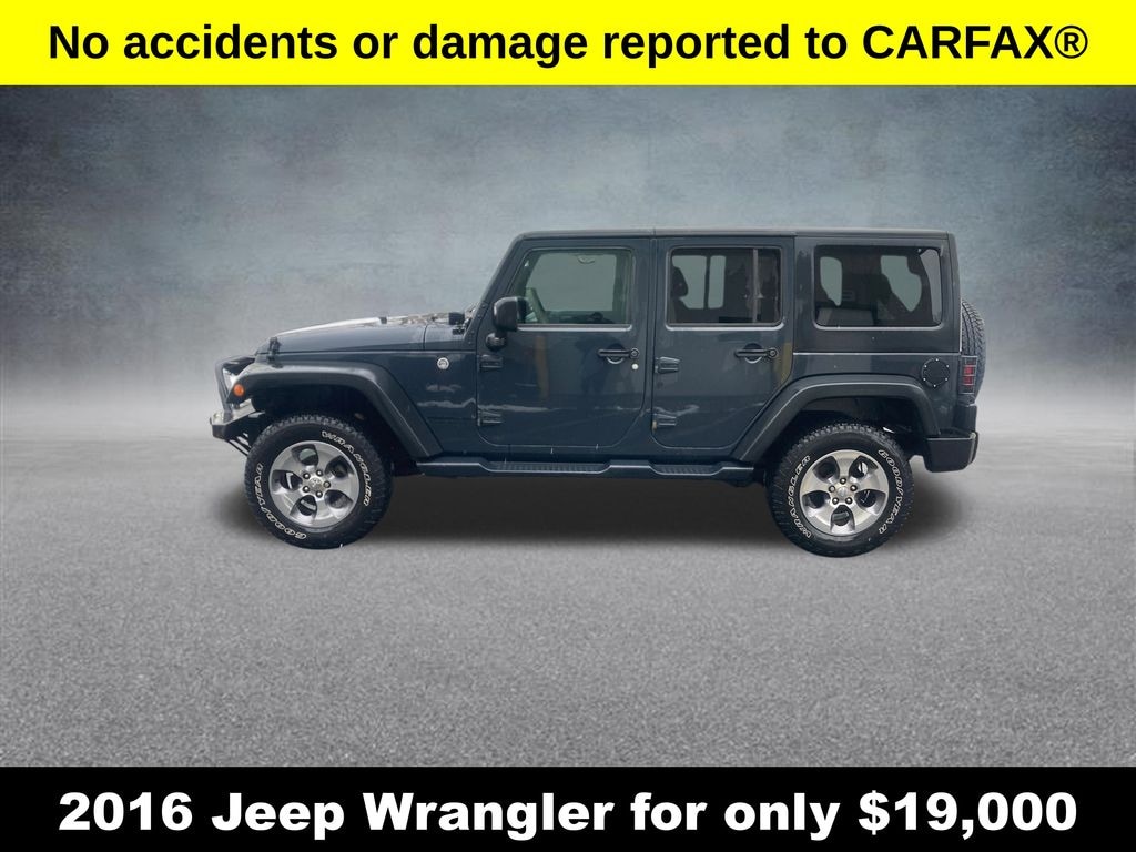 2016 Jeep Wrangler Unlimited Sport Rhino Clearcoat Unlimited Sport 3.6L V6 24V VVT 5-Speed Automatic 4WD Full Synthetic Oil Change, 17" x 7.5" Aluminum Wheels, Auto-Dimming Mirror w/Reading Lamp, Black 3-Piece Hard Top, Brake assist, Deep Tint Sunscreen Windows, Delete Sunrider Soft Top, Electronic Stability Control, Freedom Panel Storage Bag, Front 1-Touch Down Power Windows, Leather Wrapped Steering Wheel, Power Convenience Group, Power Heated Mirrors, Power Locks, Quick Order Package 24S, Rear Window Defroster, Rear Window Wiper/Washer, Remote Keyless Entry, Security Alarm, Tinted Rear Quarter & Liftgate Windows.