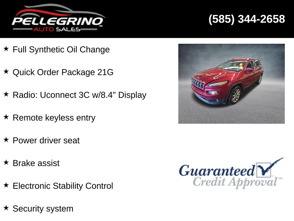 Recent Arrival! 2017 Jeep Cherokee Limited Deep Cherry Red Crystal Pearlcoat Limited 2.4L I4 MultiAir 9-Speed 948TE Automatic 4WD Full Synthetic Oil Change, 8.4" Touchscreen Display, Alloy wheels, Brake assist, Electronic Stability Control, Heated front seats, Panic alarm, Power driver seat, Quick Order Package 21G, Radio: Uconnect 3C w/8.4" Display, Remote keyless entry, Security system.