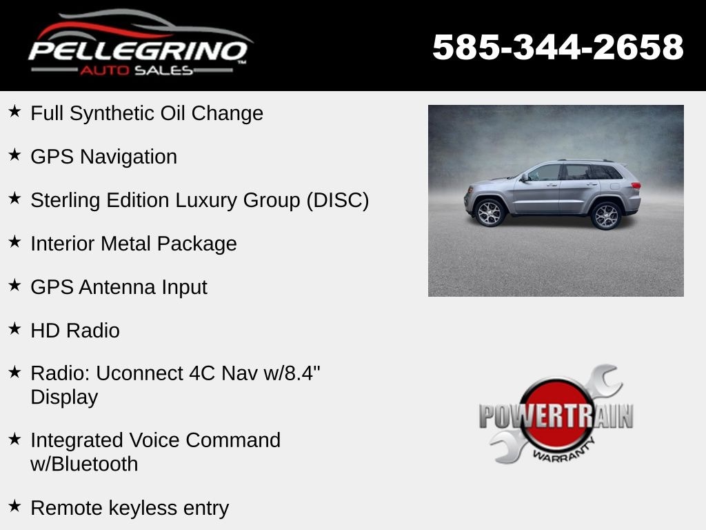2018 Jeep Grand Cherokee Limited Billet Silver Metallic Clearcoat Limited 3.6L V6 24V VVT 8-Speed Automatic 4WD Full Synthetic Oil Change, 1-Year SiriusXM Guardian Trial, 25th Anniversary Badge, 5-Year SiriusXM Traffic Service, 5-Year SiriusXM Travel Link Service, 8.4" Touchscreen Display, Aluminum Lithograph Shifter Bezel, Aluminum Painted Steering Wheel Bezel, Apple CarPlay, Auto High Beam Headlamp Control, Auto-Dimming Exterior Passenger Mirror, Automatic Headlamp Leveling System, Bi-Xenon High-Intensity Discharge Headlamps, Blind Spot & Cross Path Detection, Brake assist, Dual-Pane Panoramic Sunroof, Electronic Stability Control, For Details Visit DriveUconnect.com, Front LED Fog Lamps, Google Android Auto, GPS Antenna Input, GPS Navigation, HD Radio, Instrument Panel Aludiam Linear Bezel, Integrated Voice Command w/Bluetooth, Interior Metal Package, LED Daytime Running Headlamps, Memory seat, ParkView Rear Back-Up Camera, Power driver seat, Power Liftgate, Power Tilt/Telescope Steering Column, Radio: Uconnect 4C Nav w/8.4" Display, Remote keyless entry, SiriusXM Traffic Plus, SiriusXM Travel Link, Sterling Edition Luxury Group (DISC), USB Host Flip.