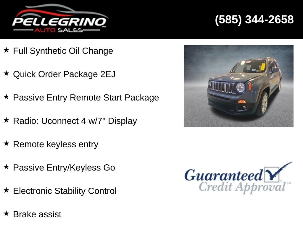 Recent Arrival! 2018 Jeep Renegade Latitude Anvil Latitude 2.4L I4 9-Speed 948TE Automatic 4WD Full Synthetic Oil Change, 17" x 7.0" Aluminum Wheels, Brake assist, Electronic Stability Control, Front Bucket Seats, ParkView Rear Back-Up Camera, Passive Entry Remote Start Package, Passive Entry/Keyless Go, Premium Cloth Bucket Seats, Quick Order Package 2EJ, Radio: Uconnect 4 w/7" Display, Remote keyless entry.