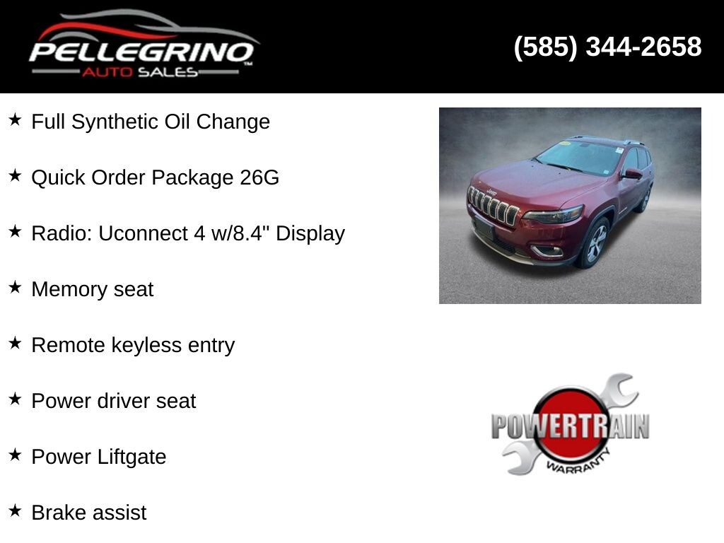 Recent Arrival! 2020 Jeep Cherokee Limited Velvet Red Pearlcoat Limited 3.2L V6 9-Speed 948TE Automatic 4WD Full Synthetic Oil Change, 8.4" Touchscreen Display, Alloy wheels, Apple CarPlay/Android Auto, Brake assist, Electronic Stability Control, Heated front seats, Memory seat, Panic alarm, ParkView Rear Back-Up Camera, Power driver seat, Power Liftgate, Power passenger seat, Quick Order Package 26G, Radio: Uconnect 4 w/8.4" Display, Remote keyless entry, Security system.