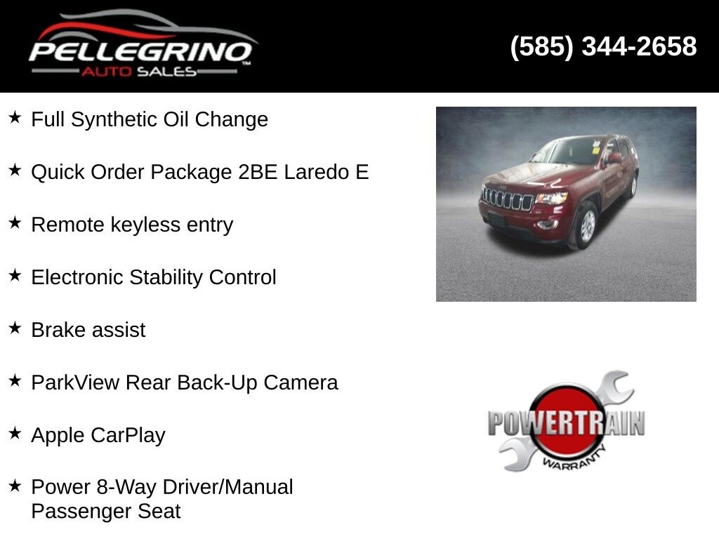 Recent Arrival! 2020 Jeep Grand Cherokee Laredo E Velvet Red Pearlcoat Laredo E 3.6L V6 24V VVT 8-Speed Automatic 4WD Full Synthetic Oil Change, Alloy wheels, Apple CarPlay, Brake assist, Bright Side Roof Rails, Electronic Stability Control, ParkView Rear Back-Up Camera, Power 4-Way Driver Lumbar Adjust, Power 8-Way Driver/Manual Passenger Seat, Quick Order Package 2BE Laredo E, Remote keyless entry.