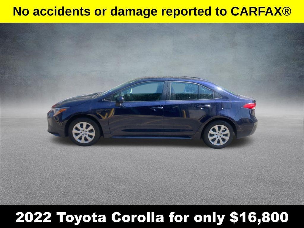 2022 Toyota Corolla LE Blue Crush Metallic w/Black Sand Pearl Roof LE 1.8L I4 DOHC 16V CVT FWD Full Synthetic Oil Change, Apple CarPlay/Android Auto, Brake assist, Electronic Stability Control, Exterior Parking Camera Rear, Panic alarm, Premium Fabric Seat Trim, Remote keyless entry, Security system.